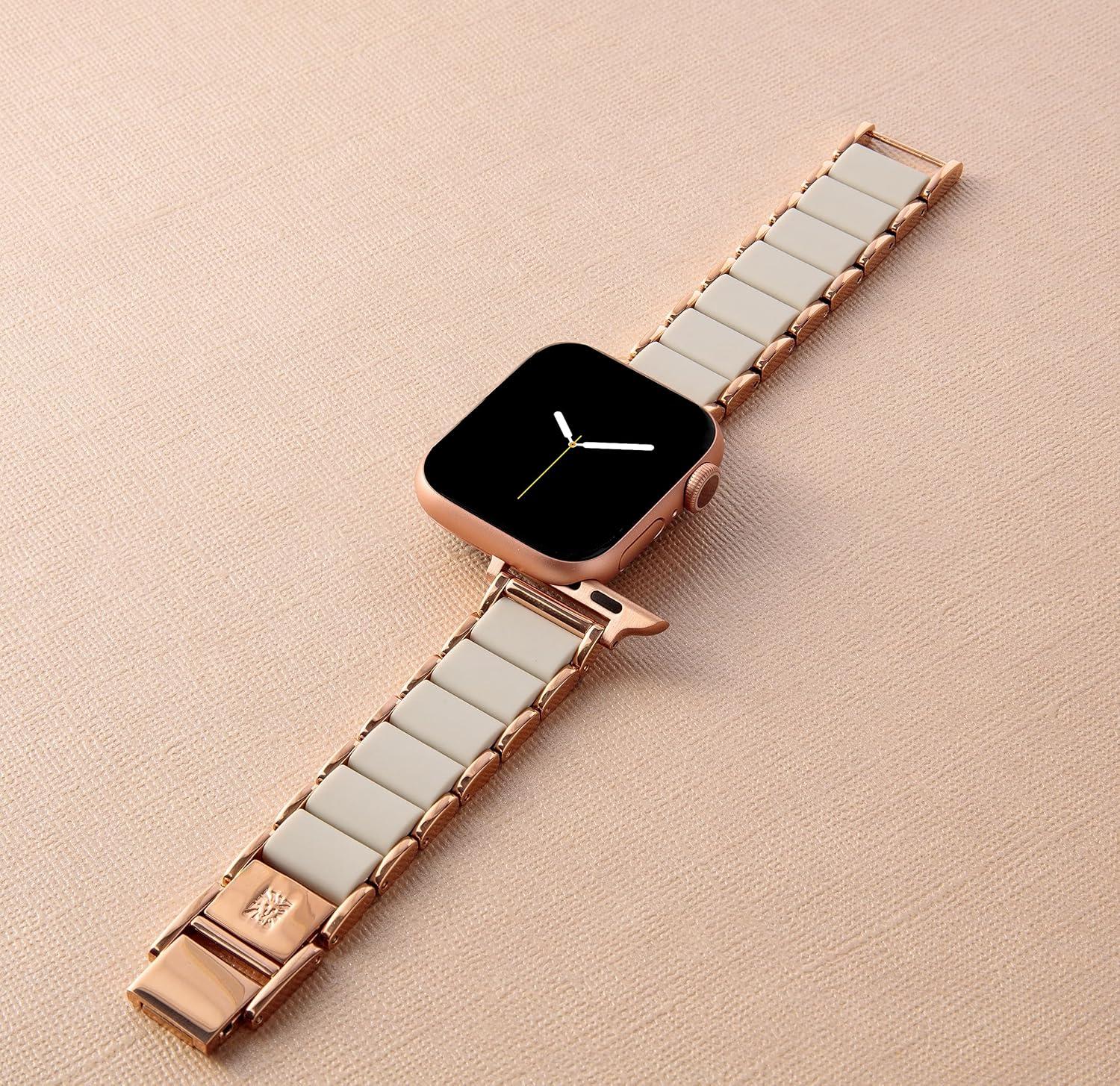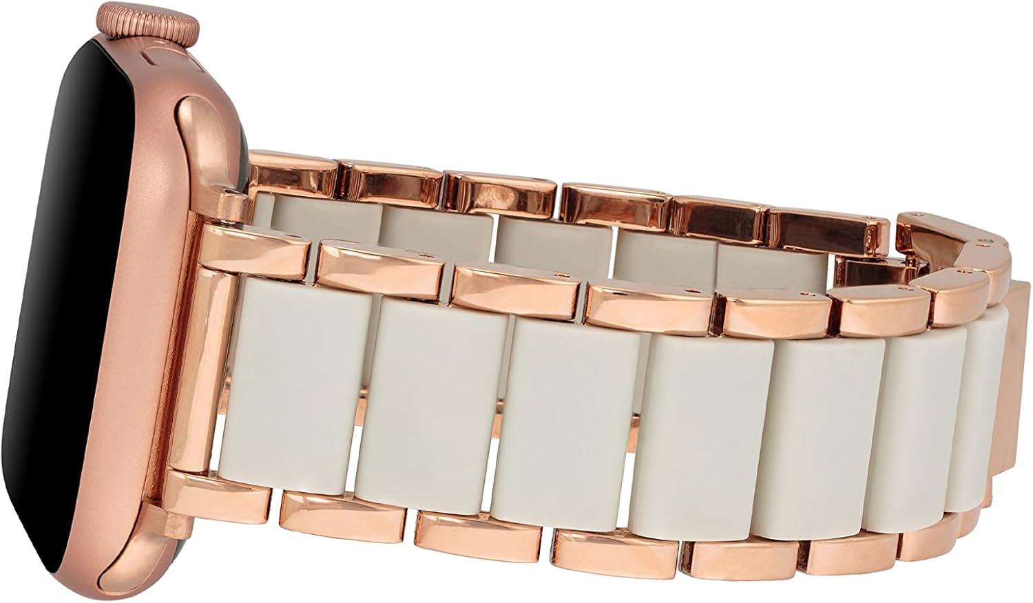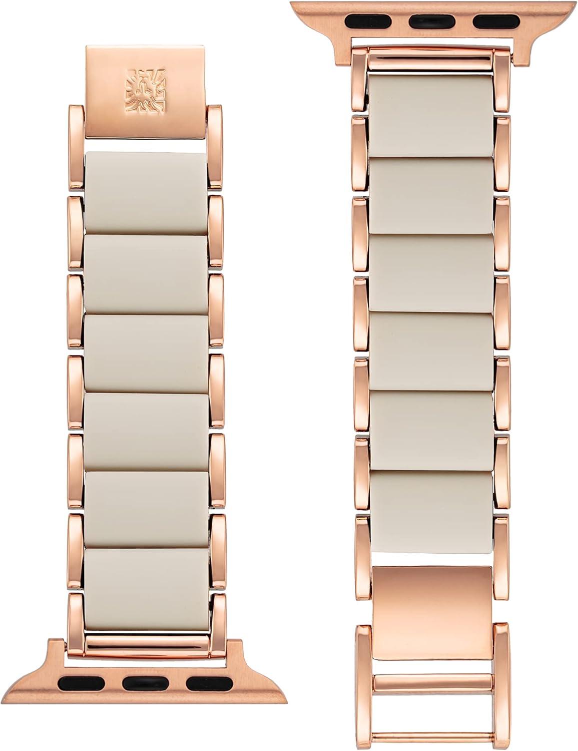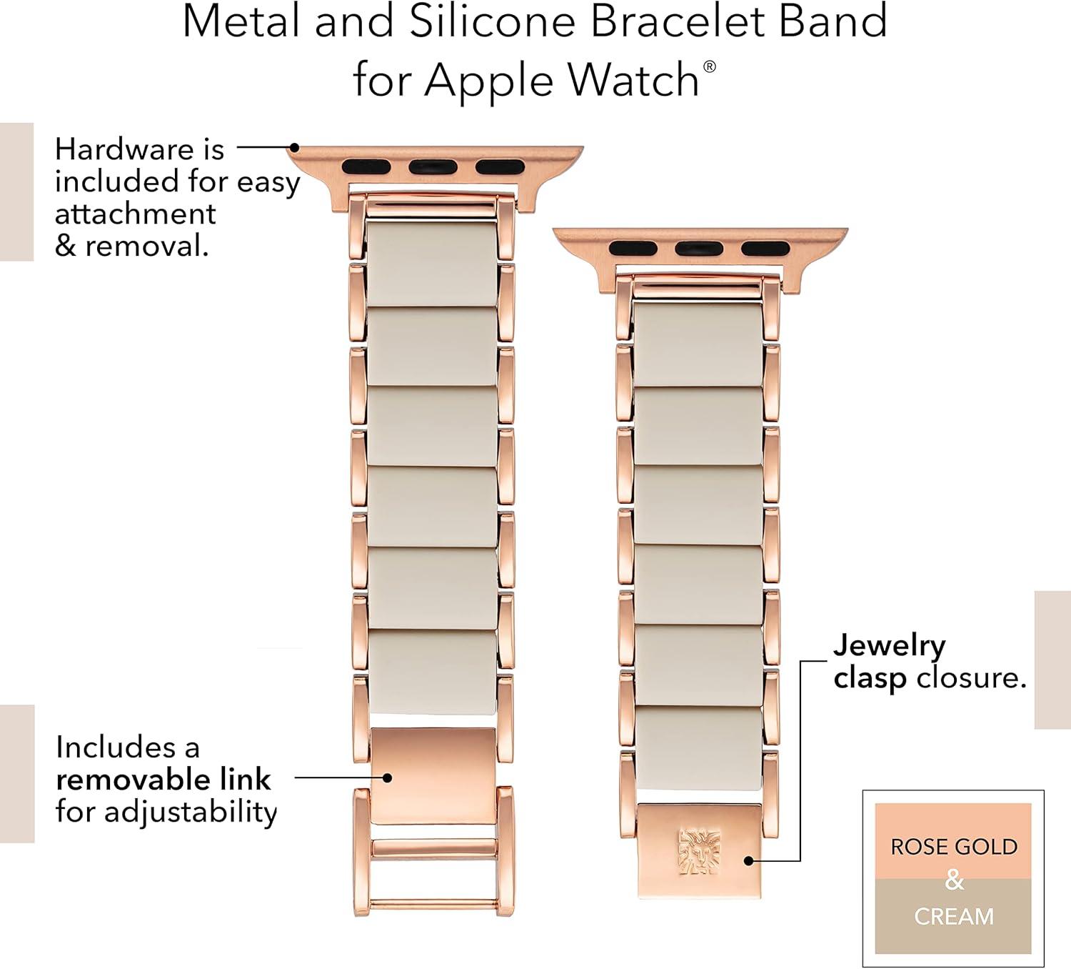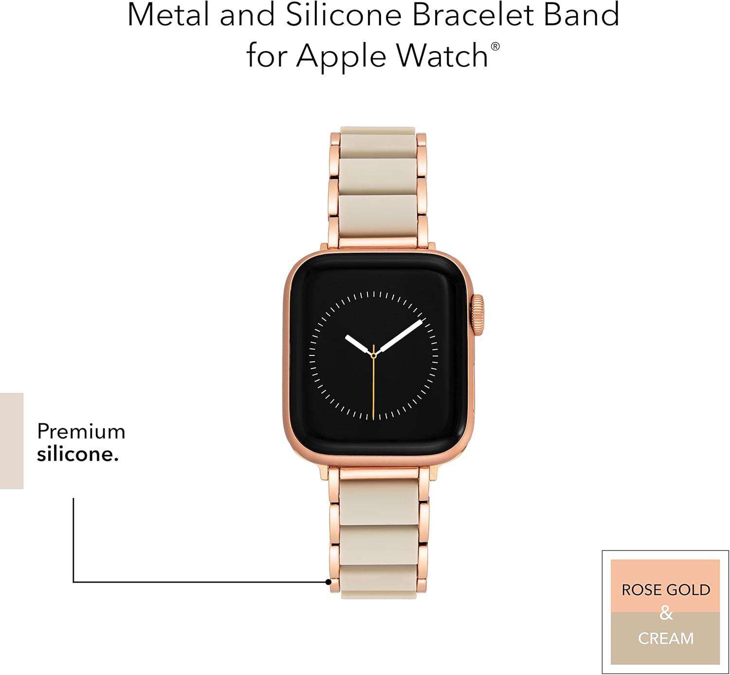 Anne Klein Silicone Fashion Bracelet for Apple Watch, Secure, Adjustable, Apple Watch Replacement Band, Fits Most Wrists(Cream/Rose Gold)