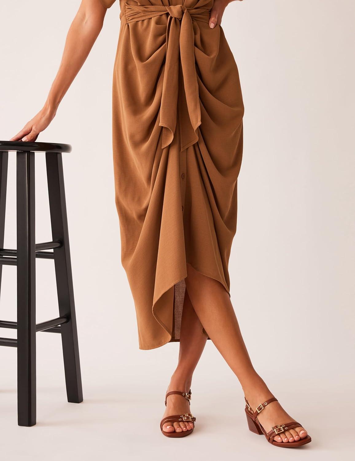 Anne Klein Women’s Block Heel Sandal Mackenzie(Brown)