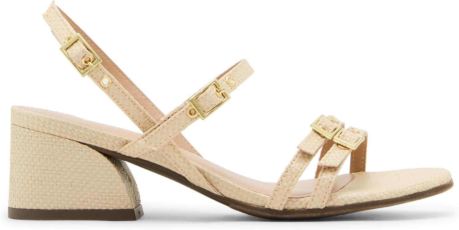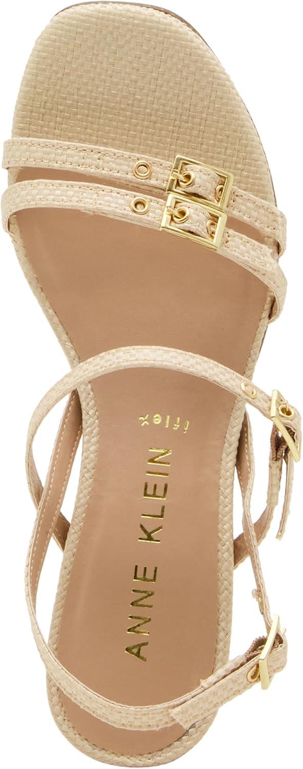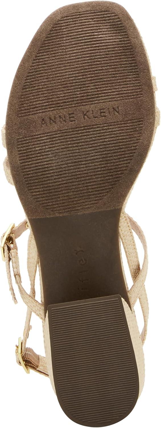 Anne Klein Women’s Block Heel Sandal Mackenzie(Natural Raffia)