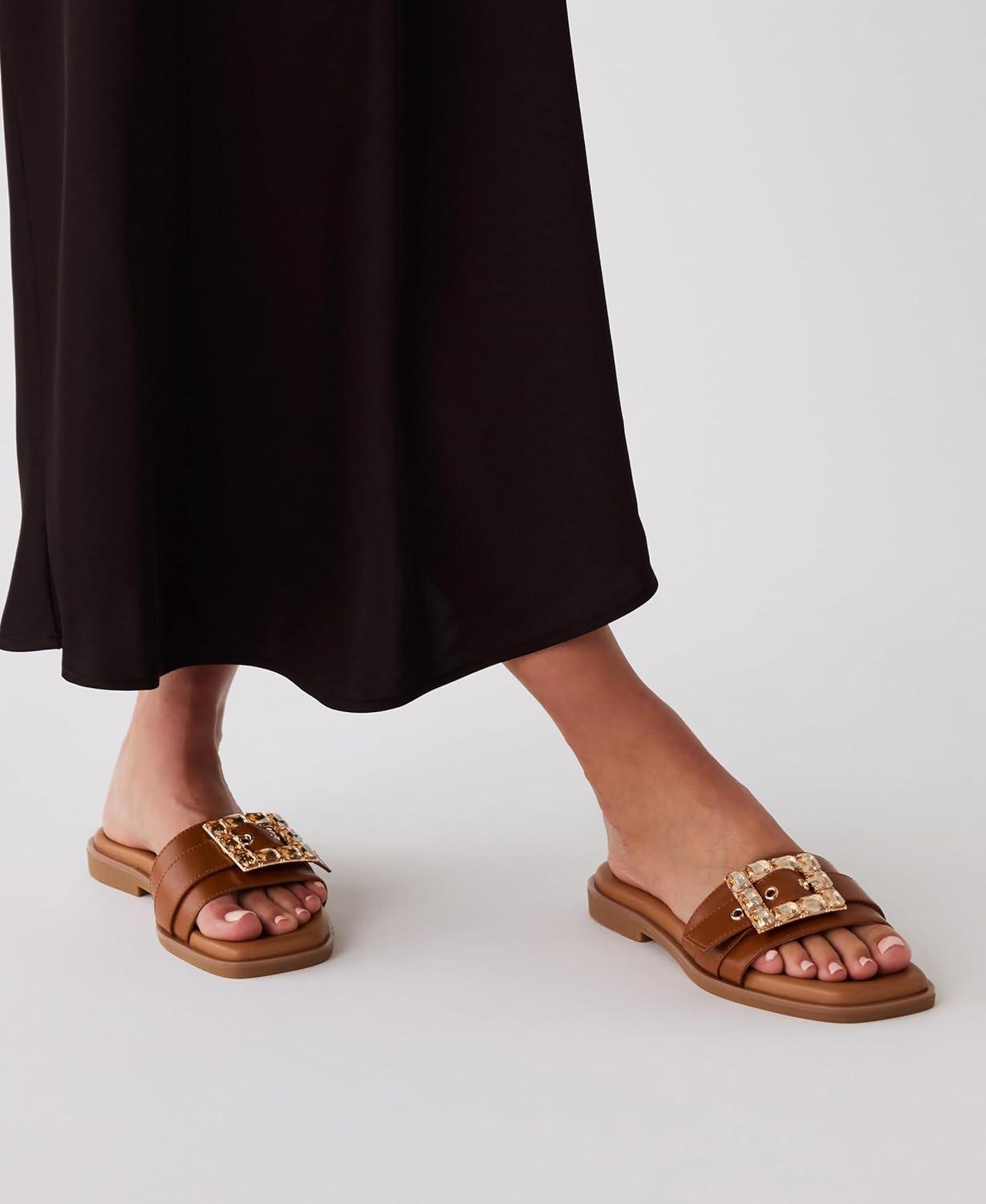 Step into effortless style with the Anne Klein Capara flat. This sleek one-band design is accented with a crystal buckle for a touch of glamour, while the cushioned footbed ensures all-day comfort. Perfect for adding a refined finish to everything from casual looks to dressier ensembles.