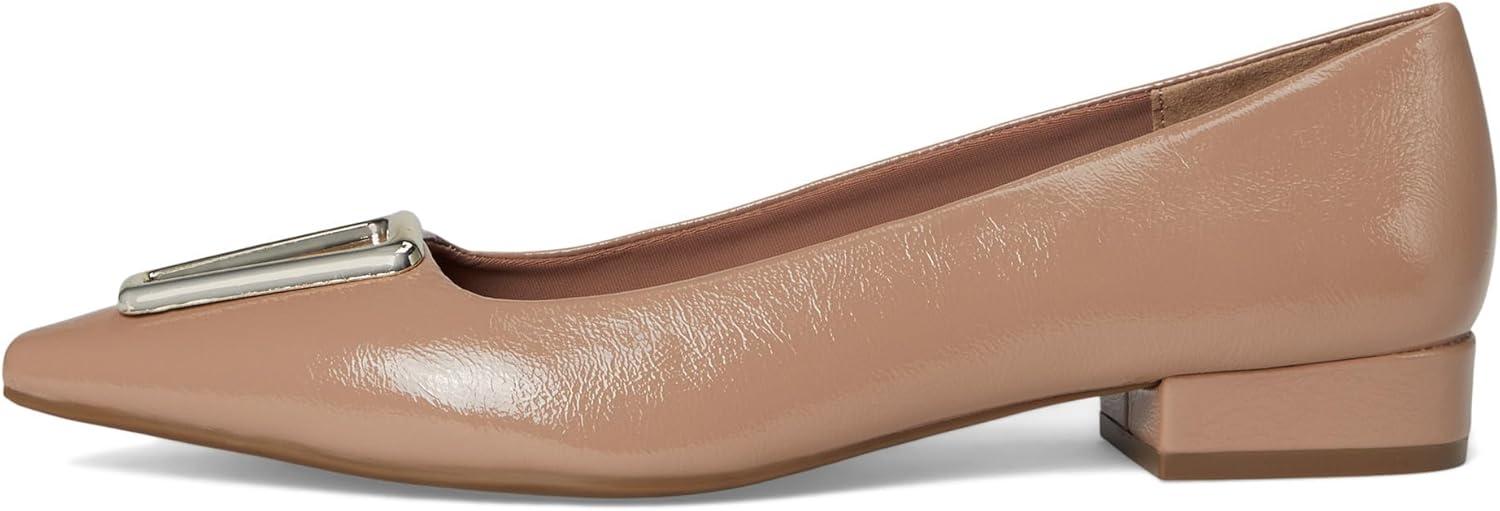 Anne Klein's Cavina flat will modernize any look with a mixed finish design, point toe, and decorative buckle.