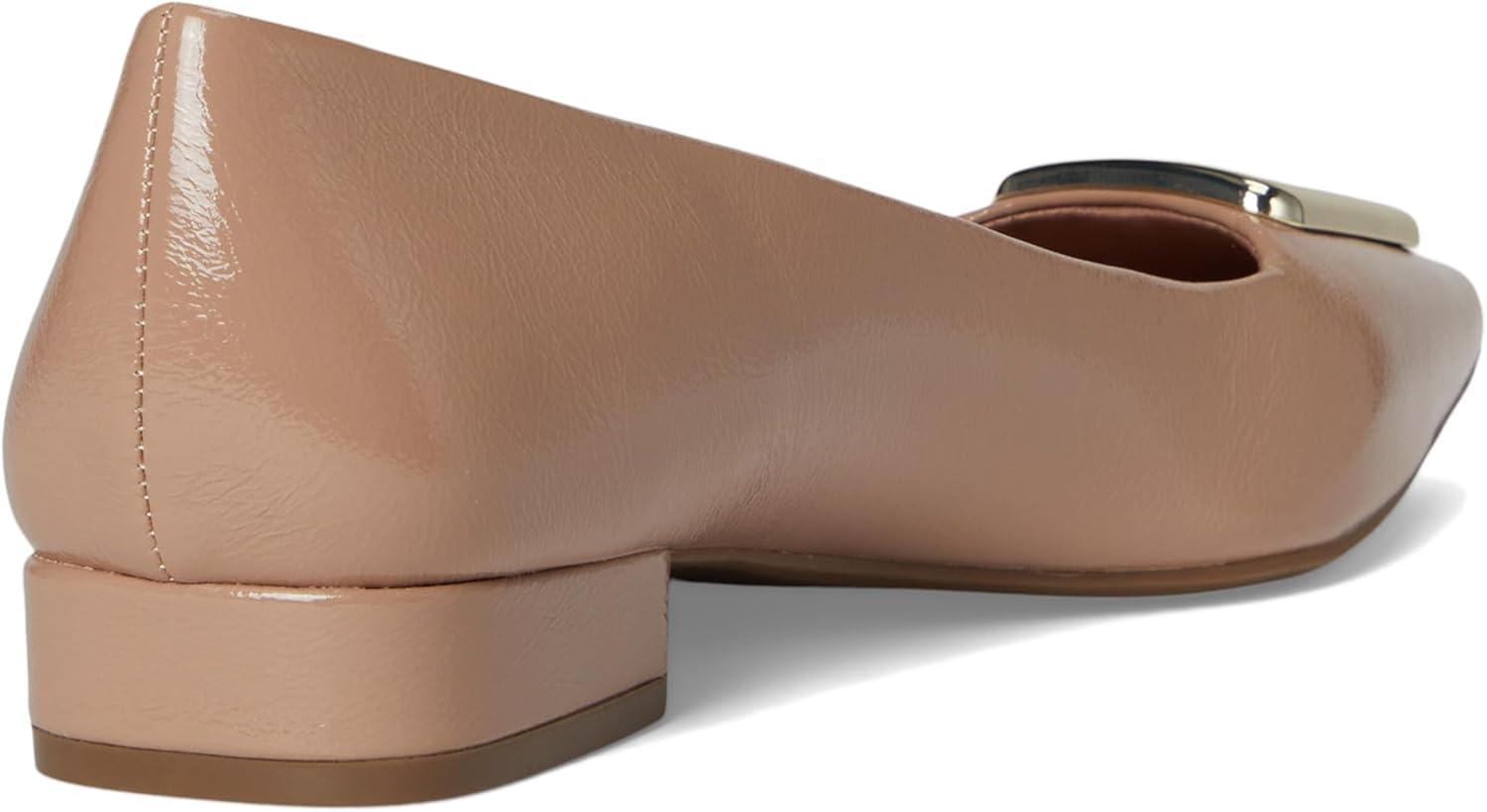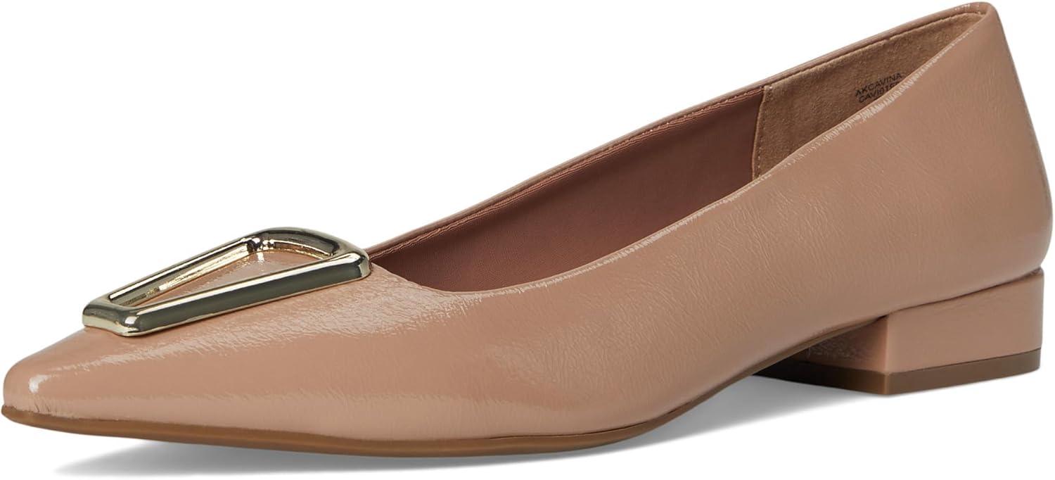 Anne Klein's Cavina flat will modernize any look with a mixed finish design, point toe, and decorative buckle.