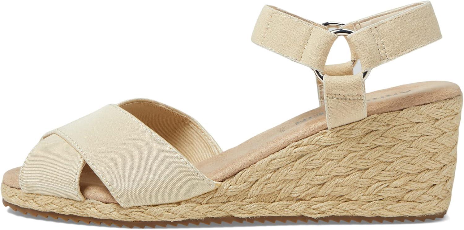 The Anne Klein Esther Wedge Sandals are a stylish and versatile addition to any wardrobe. These sandals feature a chic and modern design with a peep toe and a comfortable wedge heel that makes them perfect for any occasion. The adjustable ankle strap provides a secure and comfortable fit, while the cushioned footbed adds extra support for your feet. The wedge heels provide stability and support while walking, making them a comfortable choice for all-day wear. Whether you're dressing up for a special occasion or running errands around town, the Anne Klein Esther Wedges are a stylish and comfortable choice. The wedges are easy to slip on and off, making them a convenient choice for any busy woman.