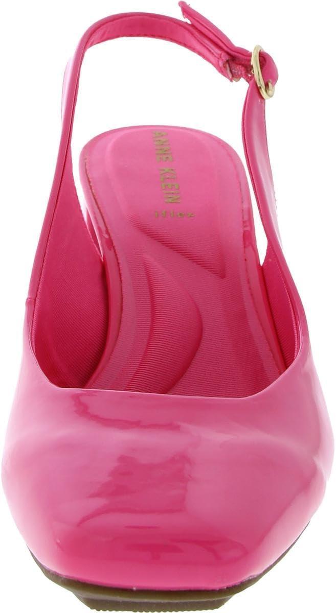 Anne Klein Womens Faux Leather Square Toe Slingback Heels(Fuschia)