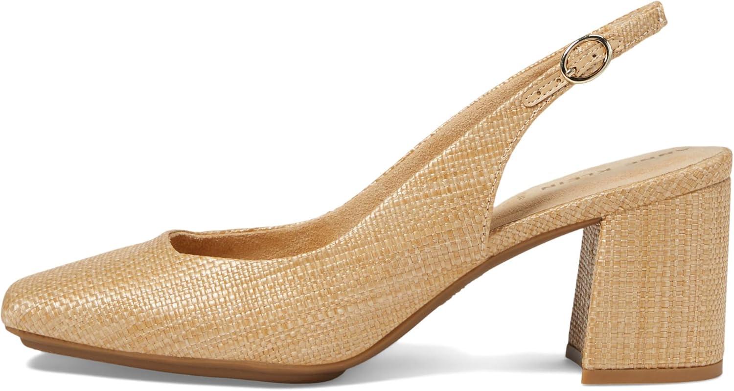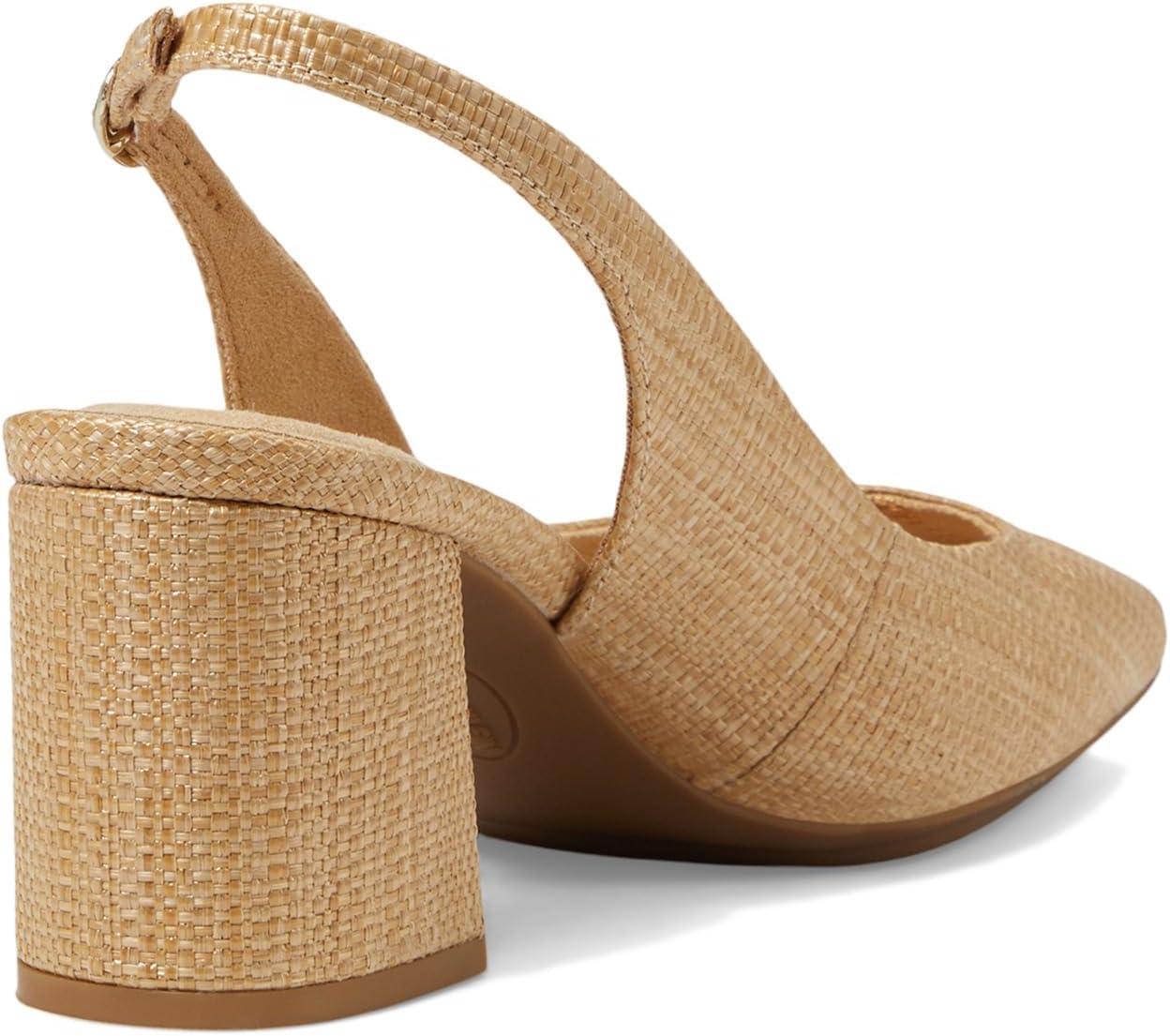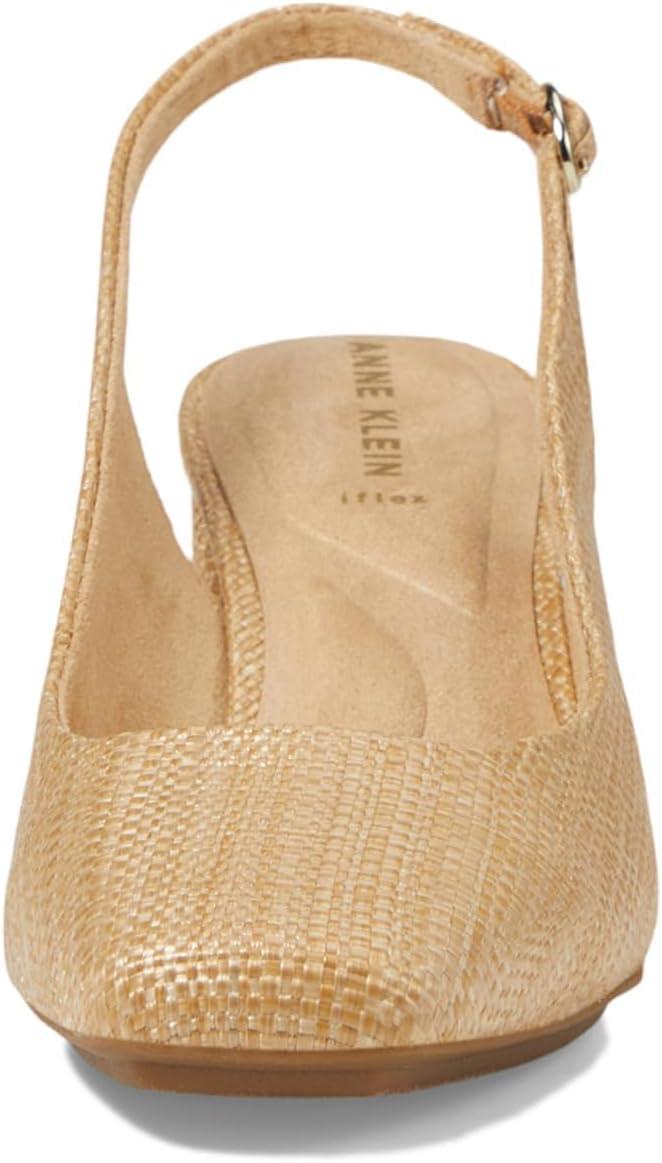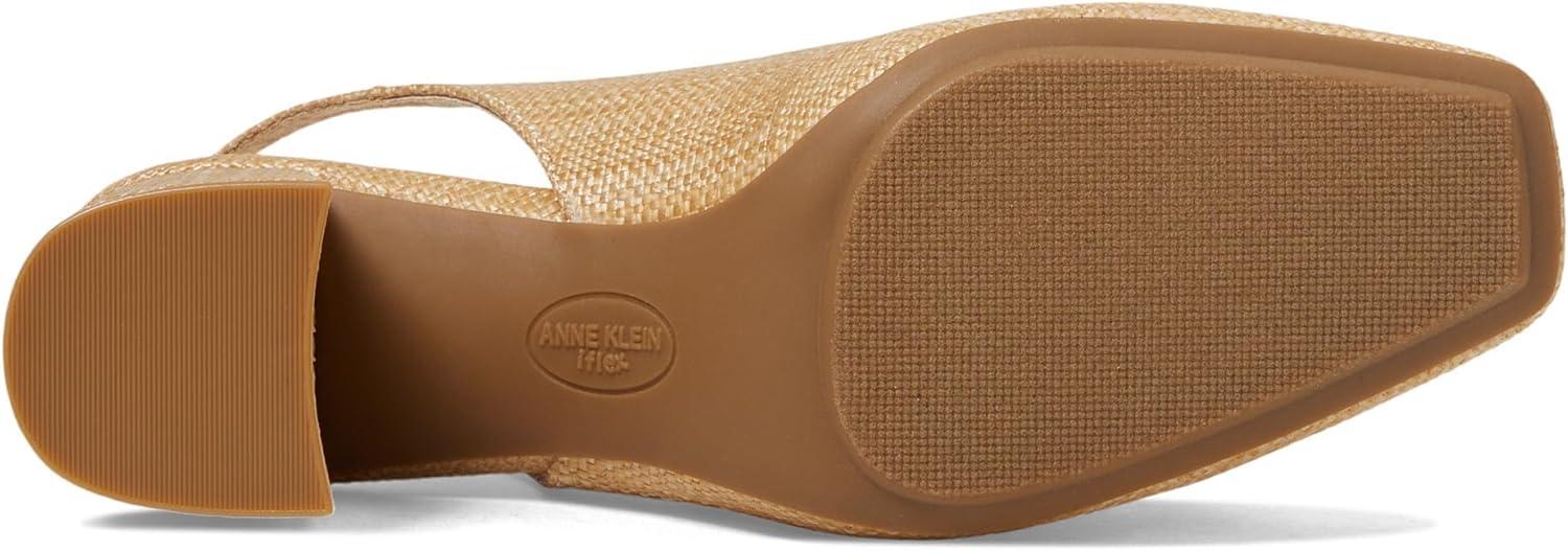 Anne Klein Womens Faux Leather Square Toe Slingback Heels(Natural Raffia)