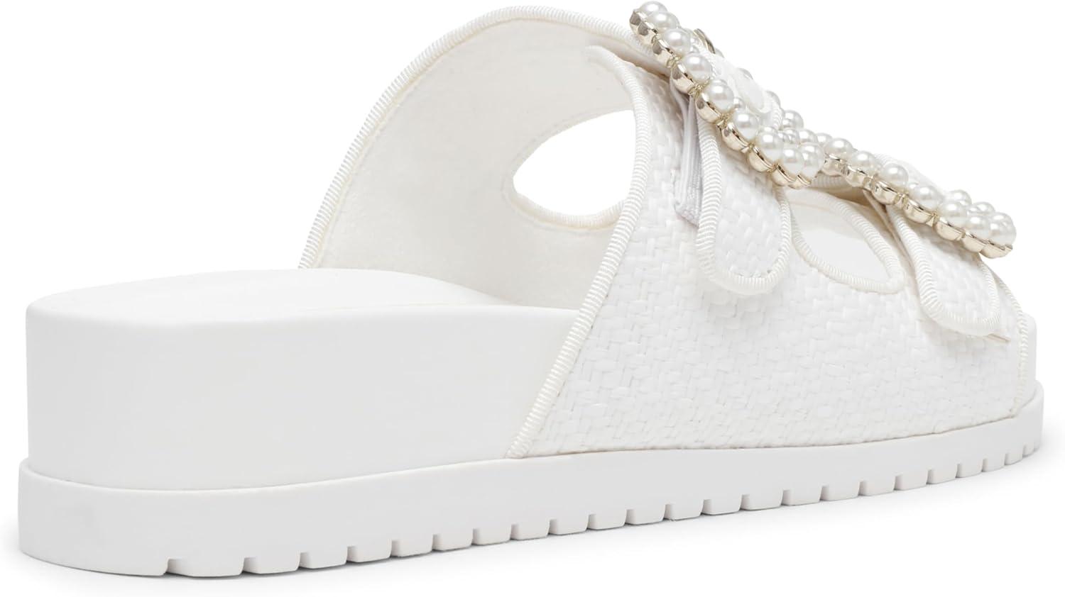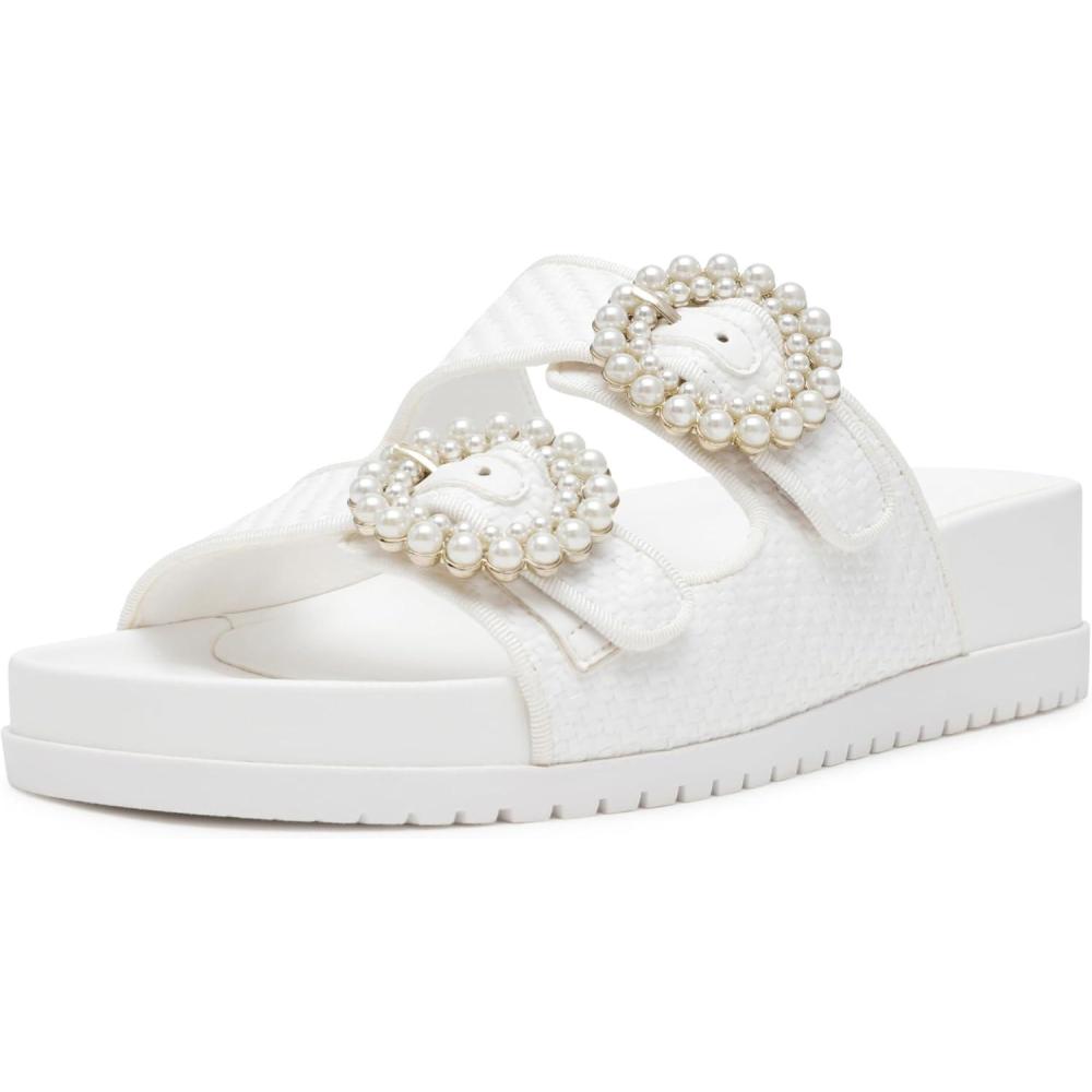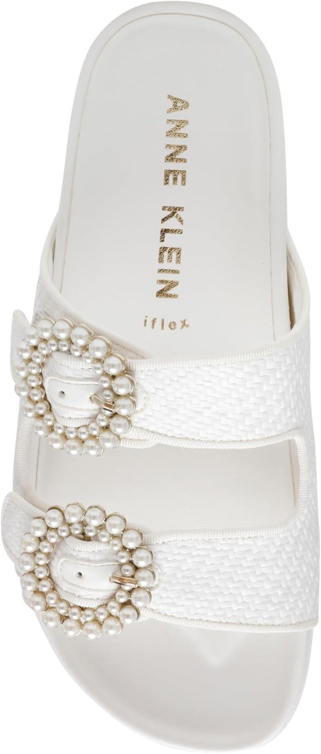 Step out feeling extremley fashionable and comfortable with Anne Klein's Happy sandal. This two-band sandal with a cushioned footbed is adorned with delicate pearl appliques, effortlessly blending style and comfort.
