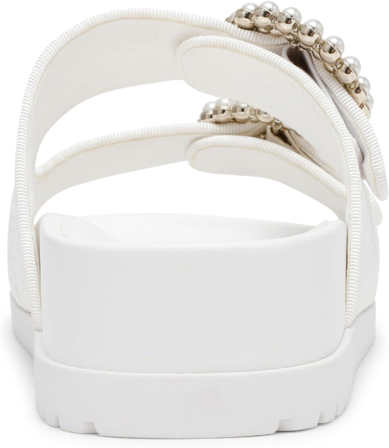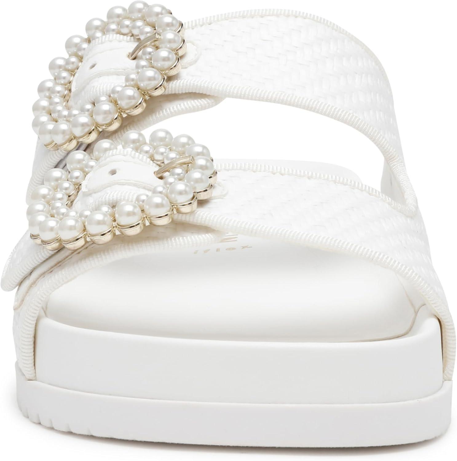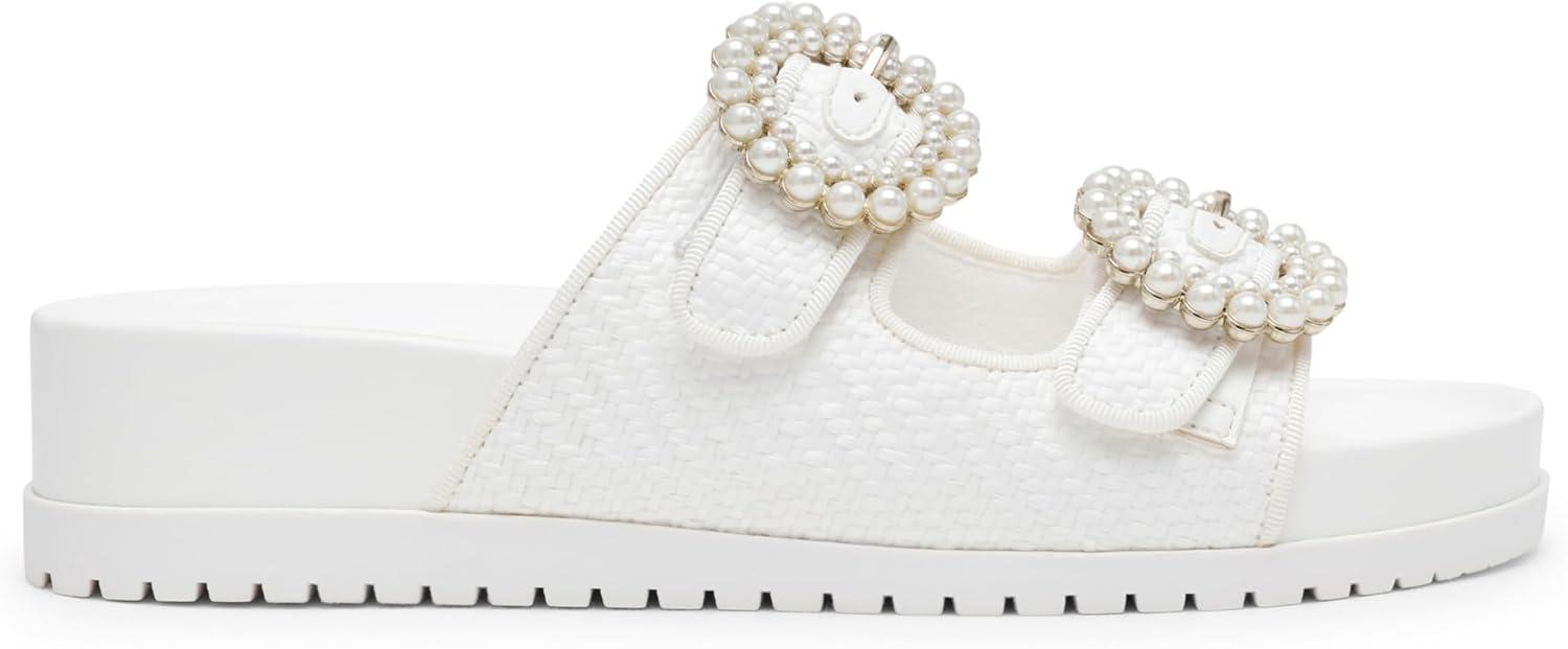 Step out feeling extremley fashionable and comfortable with Anne Klein's Happy sandal. This two-band sandal with a cushioned footbed is adorned with delicate pearl appliques, effortlessly blending style and comfort.