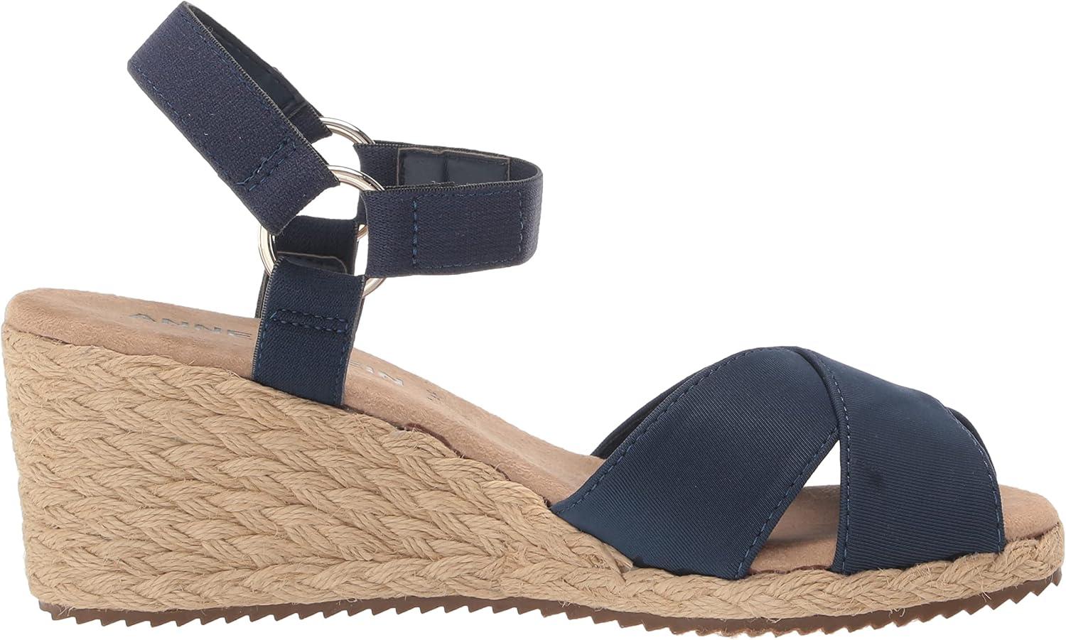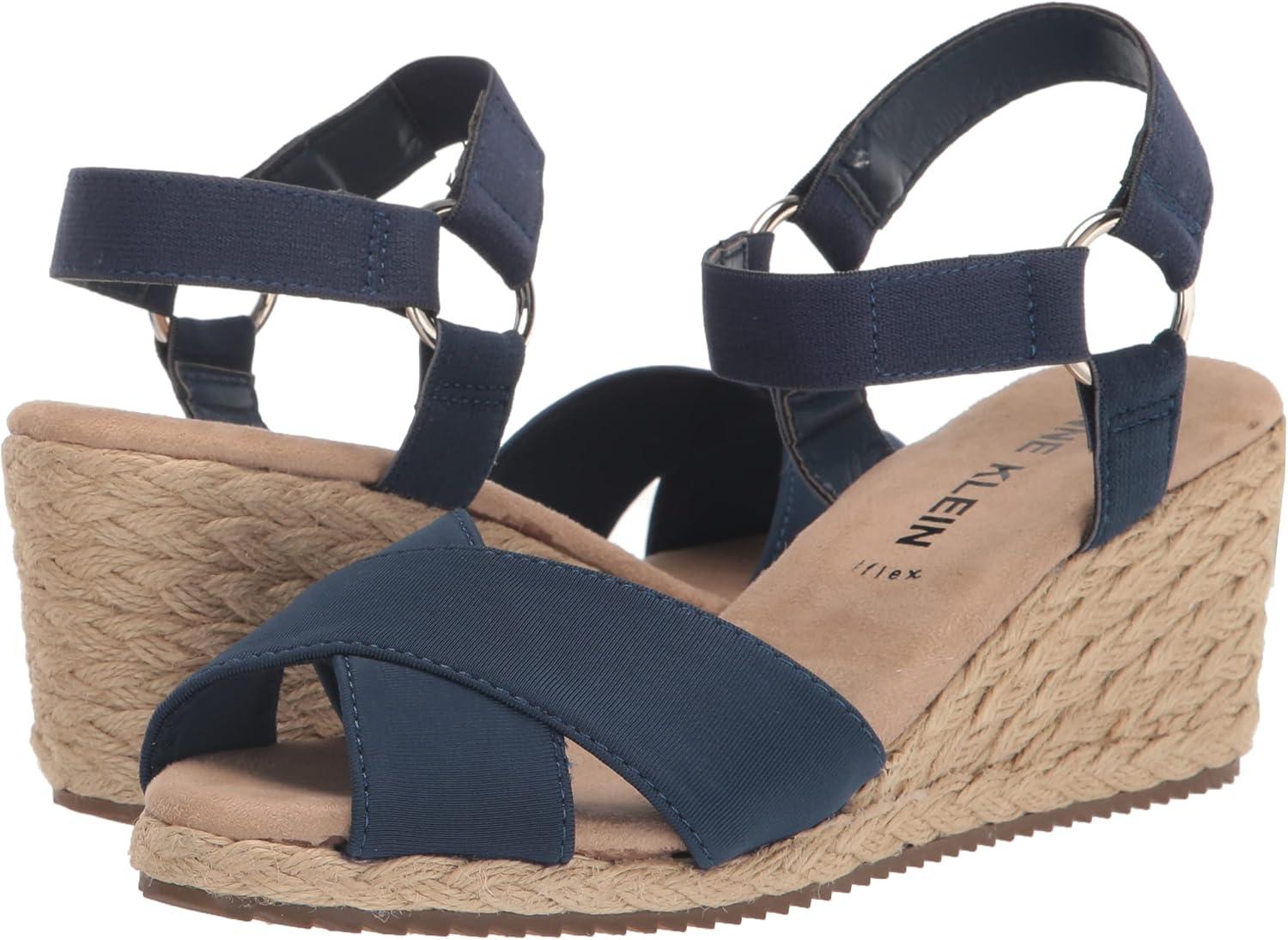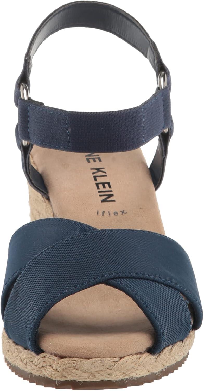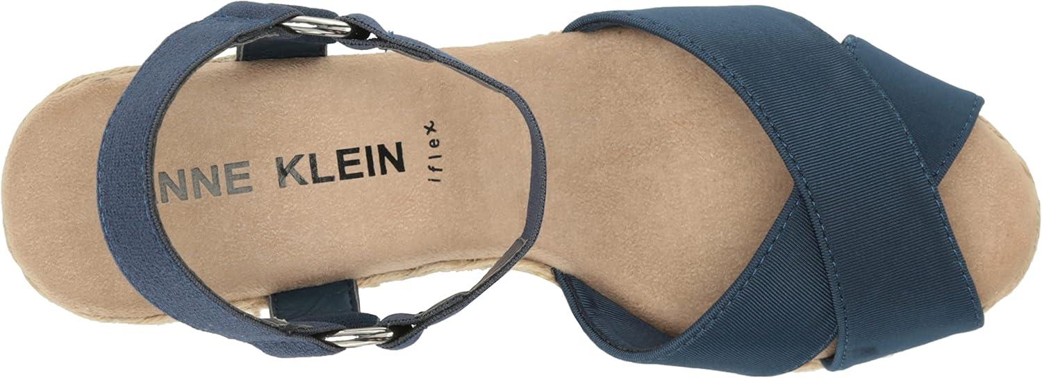 Anne Klein Womens KELLIS Ankle Strap Open Toe Wedge Sandals(Navy)