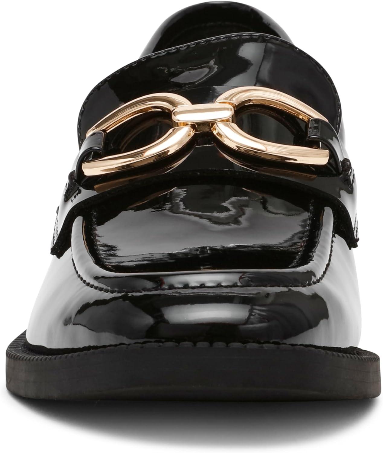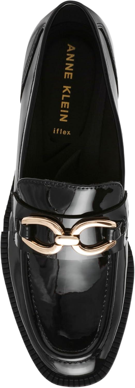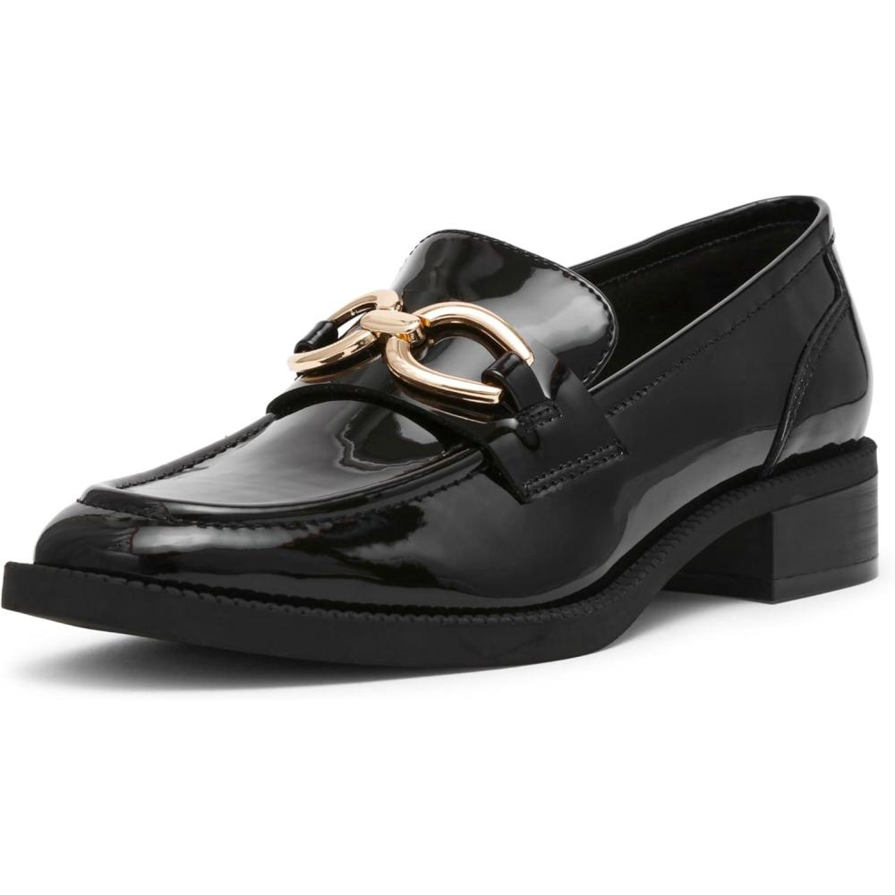 Anne Klein Womens Korrie Buckle Loafers(Black Patent)