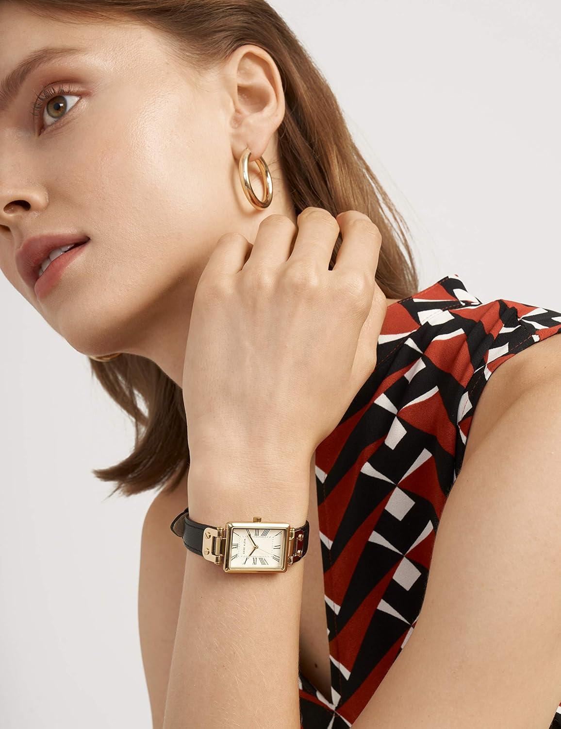 Anne Klein Women’s Leather Strap Watch, AK/3752(Black/Gold)