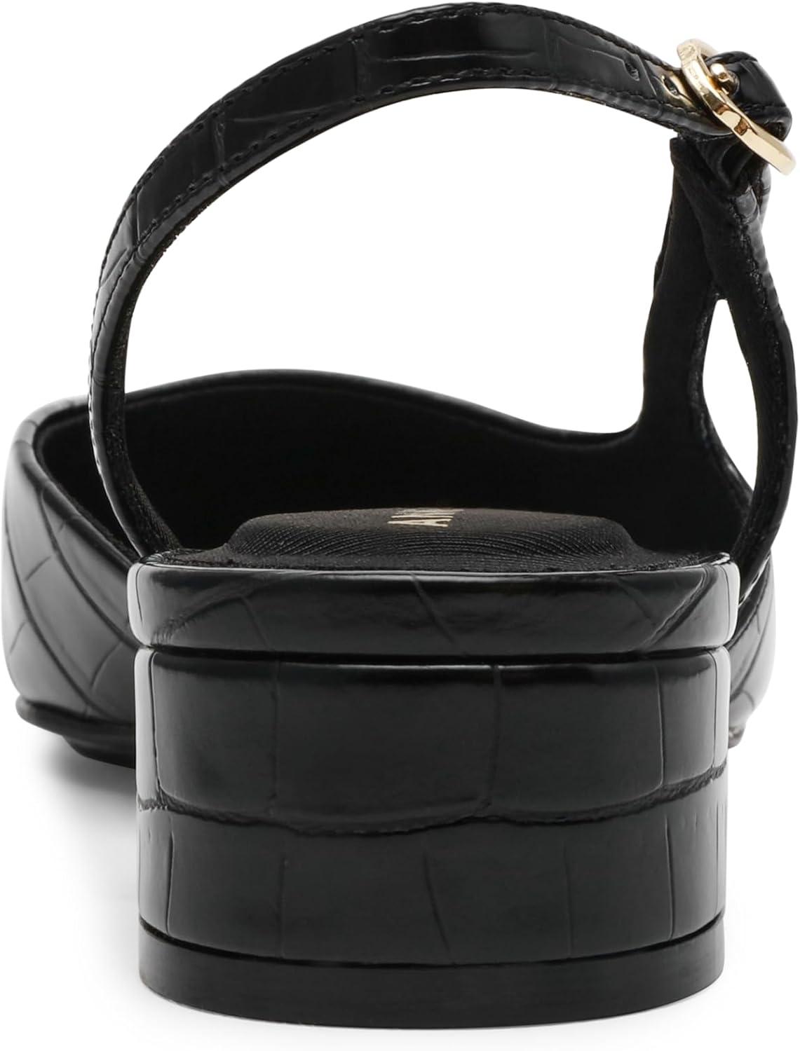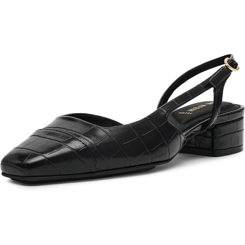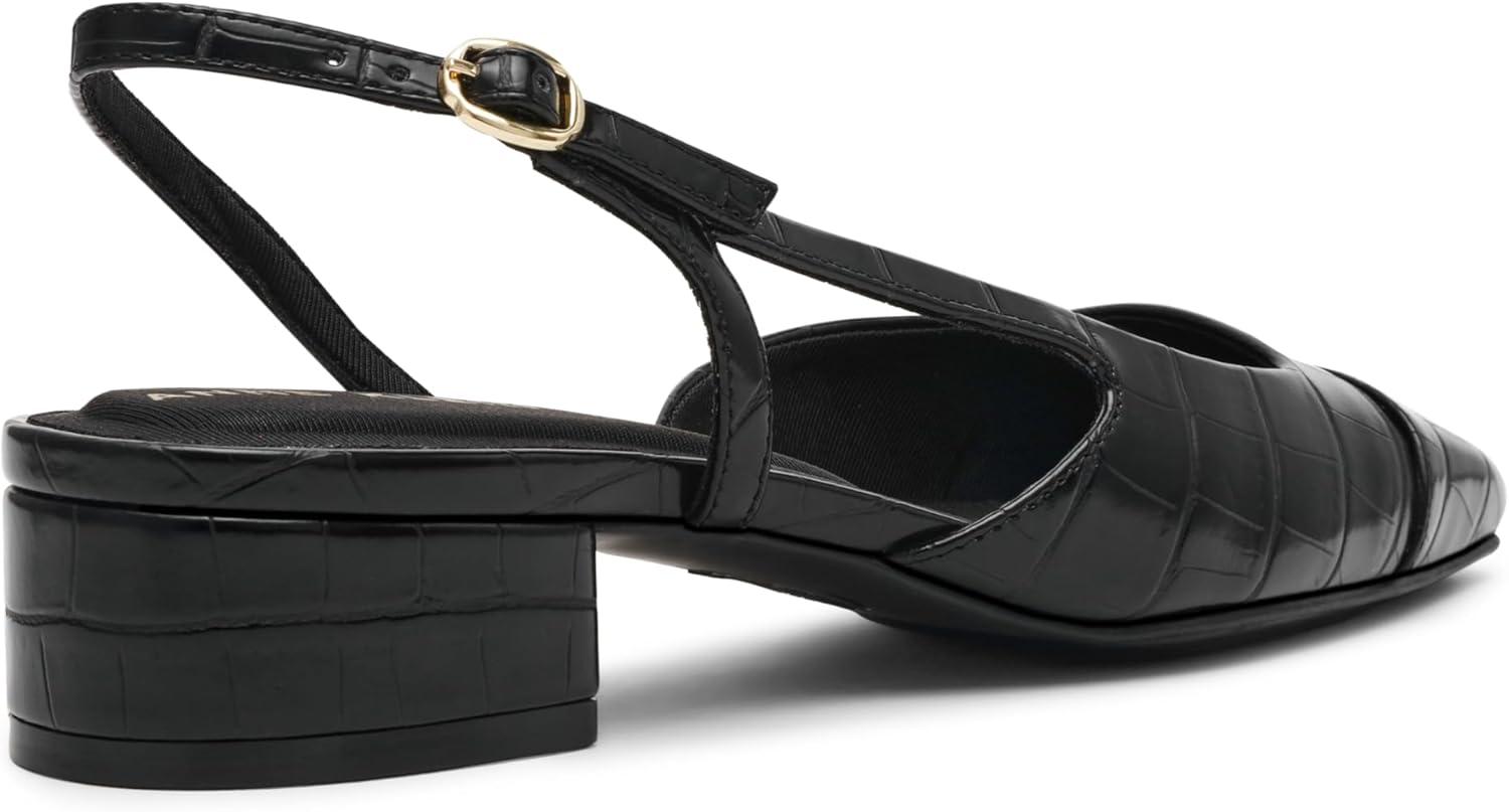 The Anne Klein Nia sling-back is the perfect combination of chic sophistication and everyday wearability. Featuring a closed-toe design, a stylish cap-toe, and a short block heel, this versatile style effortlessly transitions from day to night. With its refined silhouette, the Nia adds a polished touch to any wardrobe, making it ideal for both casual and dressy occasions.