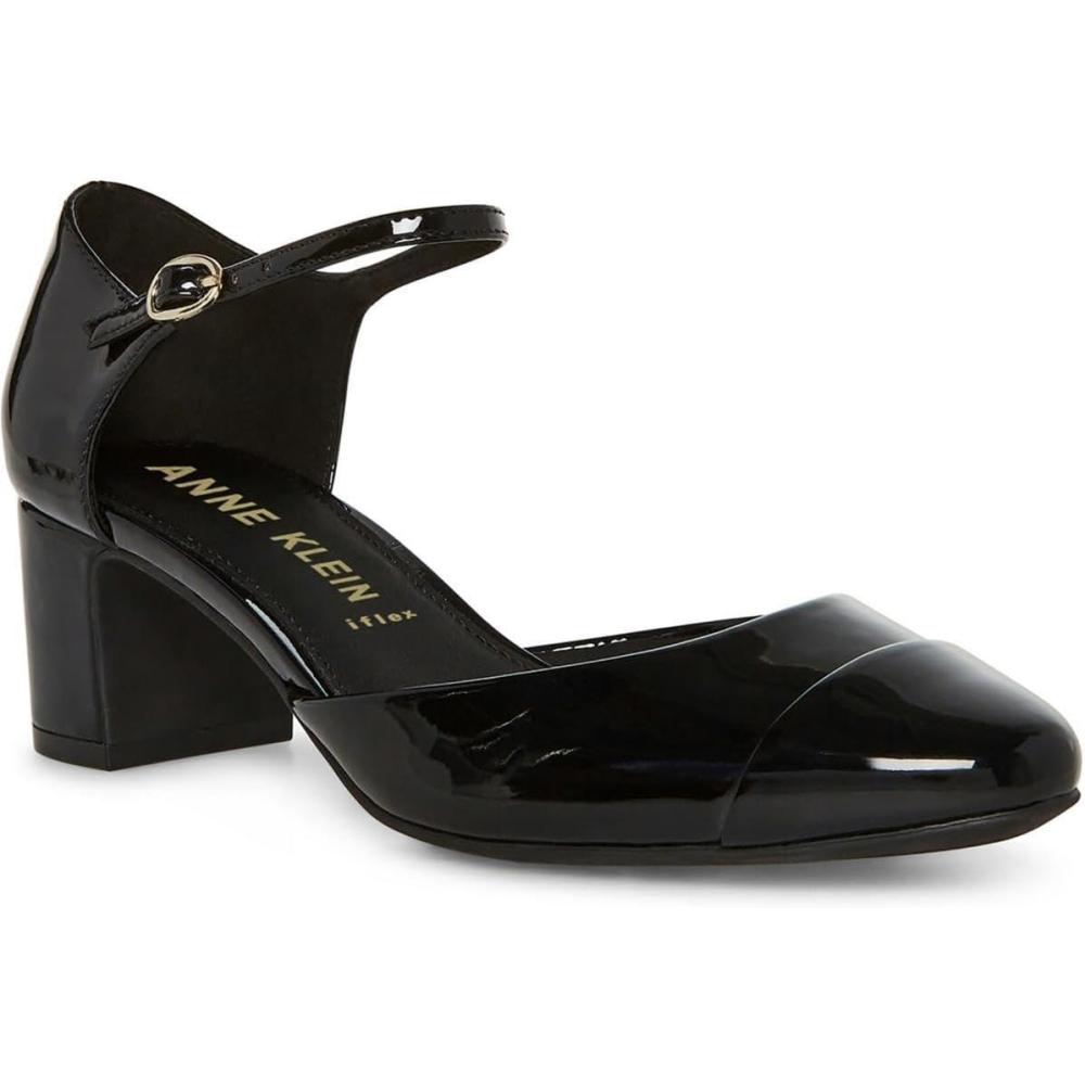 Anne Klein Womens Pearle Toe Cap Ankle Strap Pumps(Black Patent)