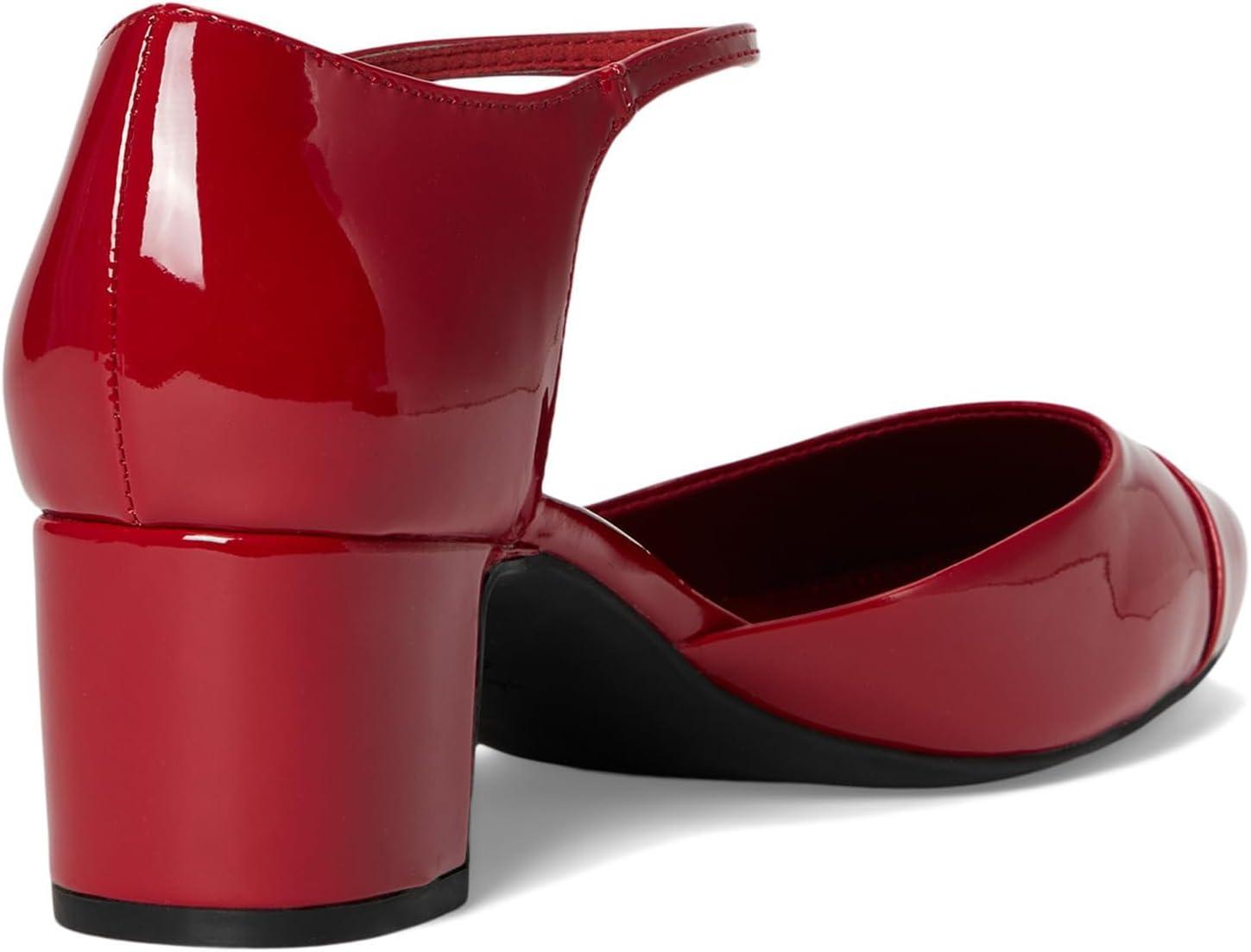 Anne Klein Womens Pearle Toe Cap Ankle Strap Pumps(Deep Red)