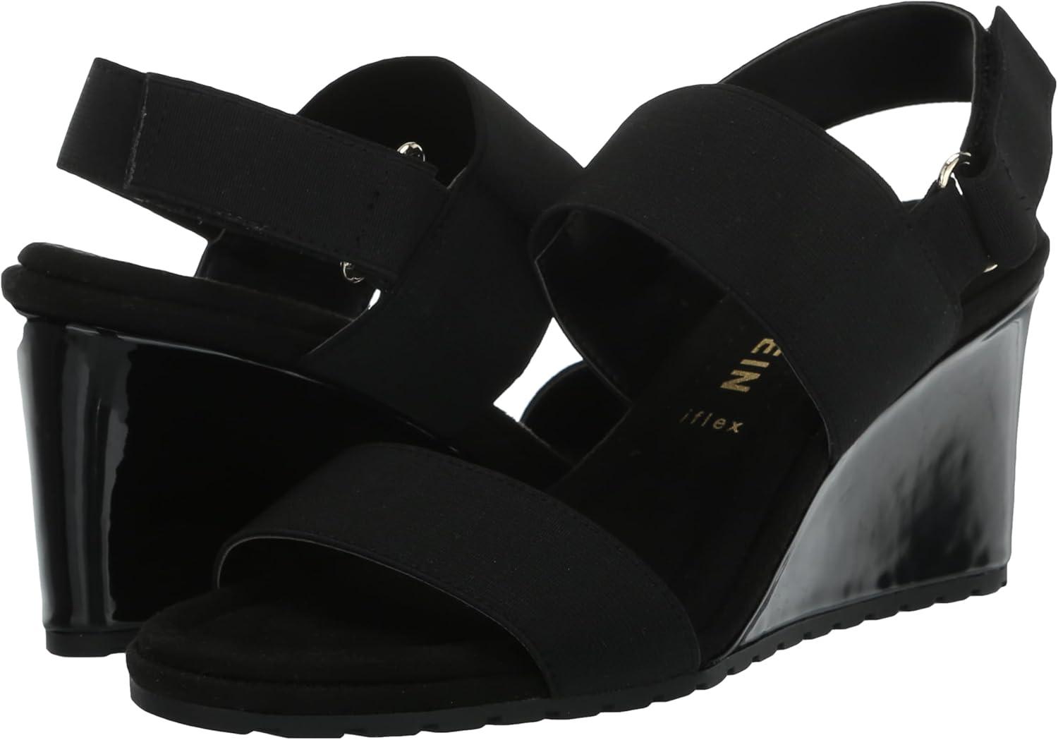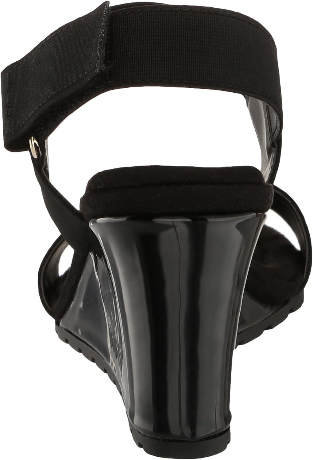 Anne Klein Womens Silvy Slingback Ankle Strap Wedge Sandals(Black)