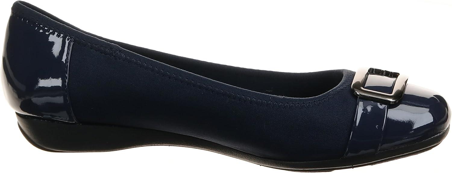 Anne Klein'S Ulivera flat will modernize any look with a mixed finish design, square toe, and decorative buckle over the vamp.