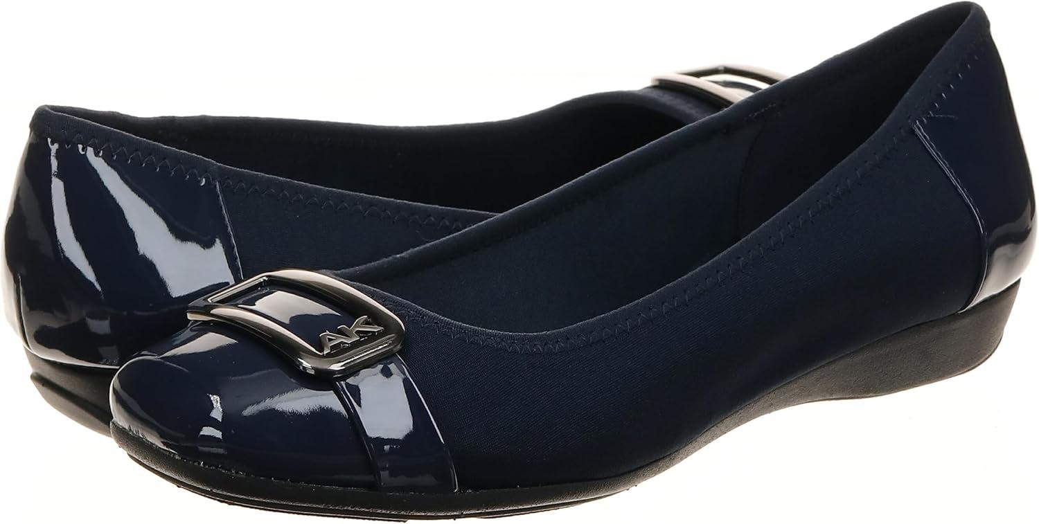Anne Klein Womens Ulivera Flex Fit Textured Flat Shoes(Navy)