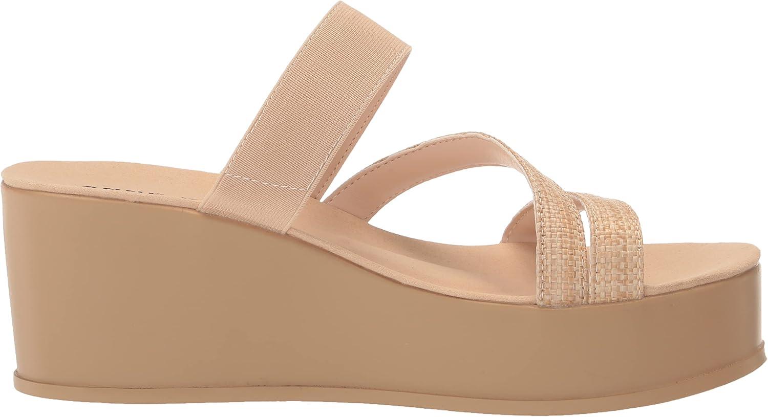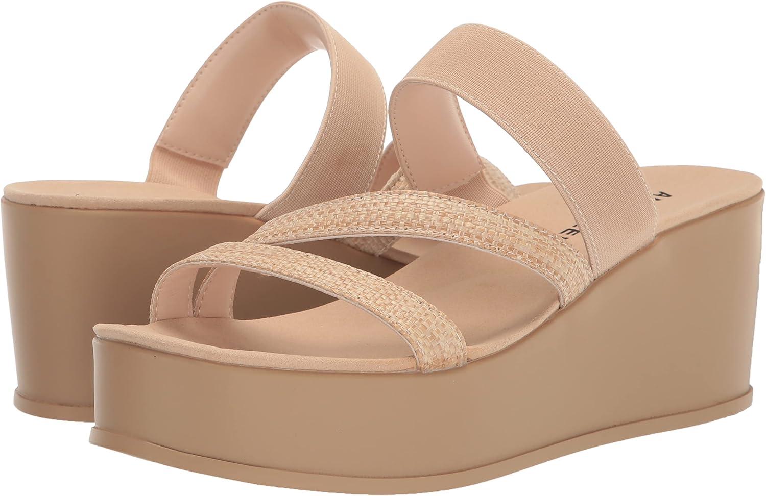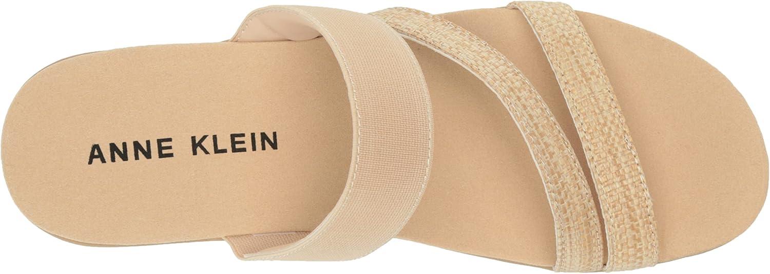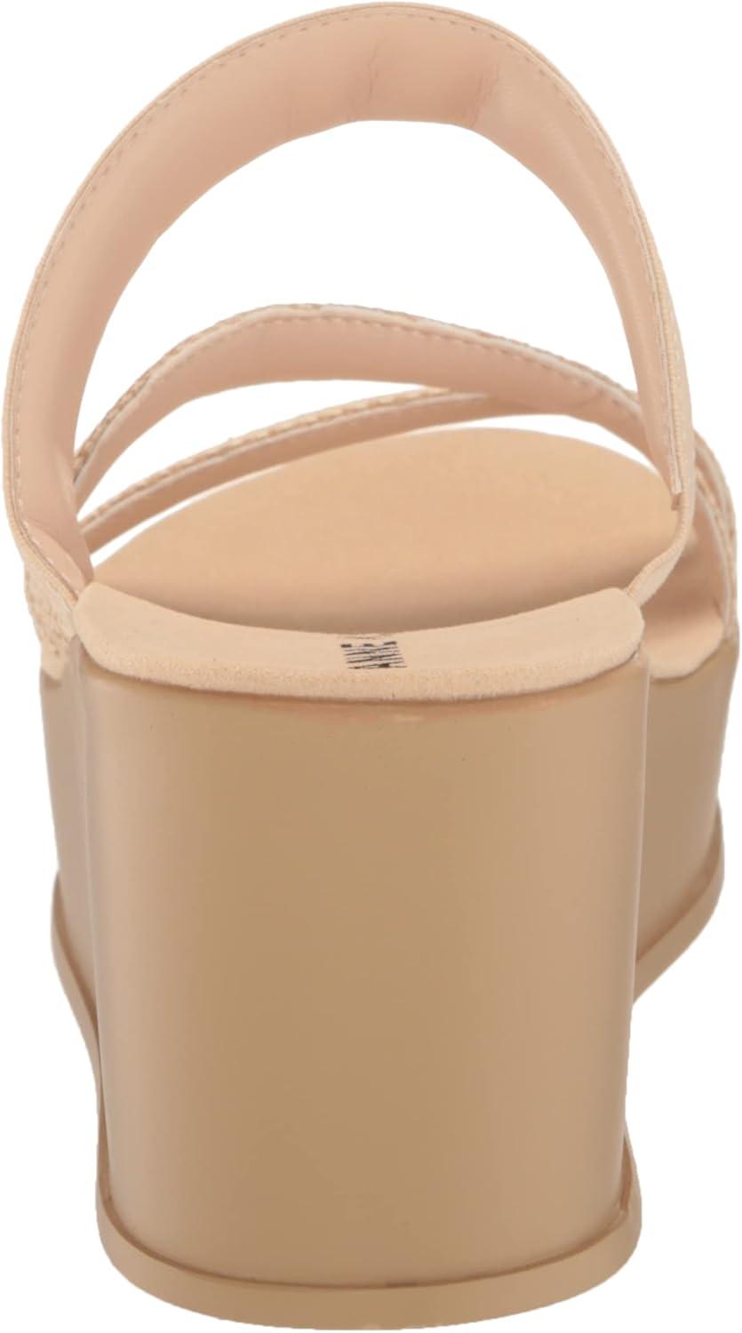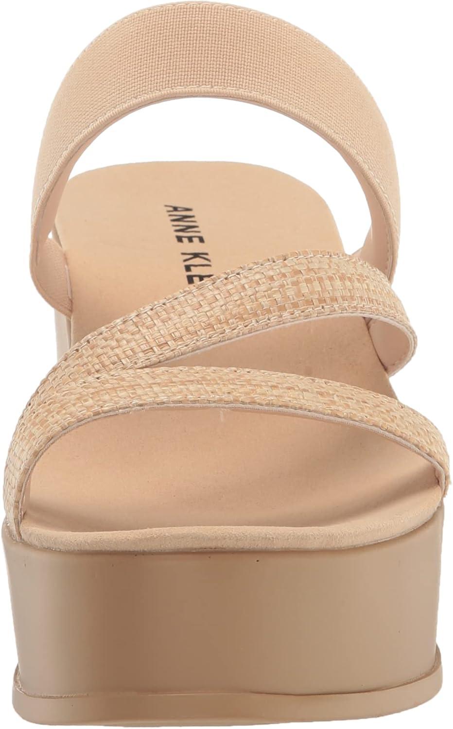 Anne Klein Womens Vai Faux Suede Slip On Platform Sandals(Natural Raffia)