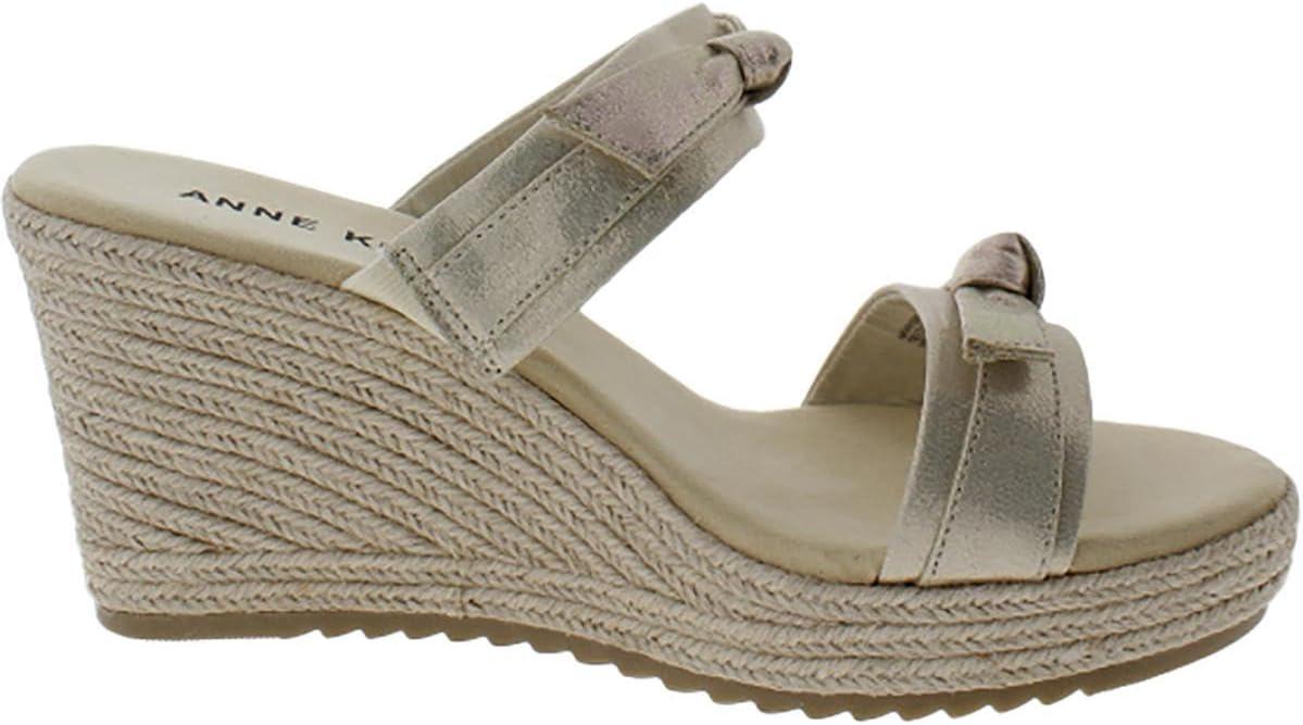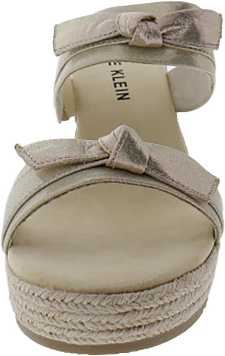 Anne Klein Womens Whisper Knot-Front Faux Leather Wedge Sandals(Lt Gold)