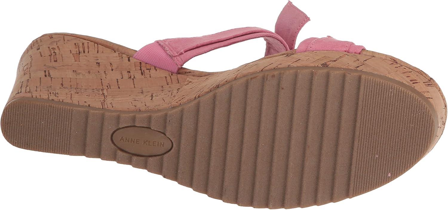 Anne Klein Womens Whisper Knot-Front Faux Leather Wedge Sandals(Pink)