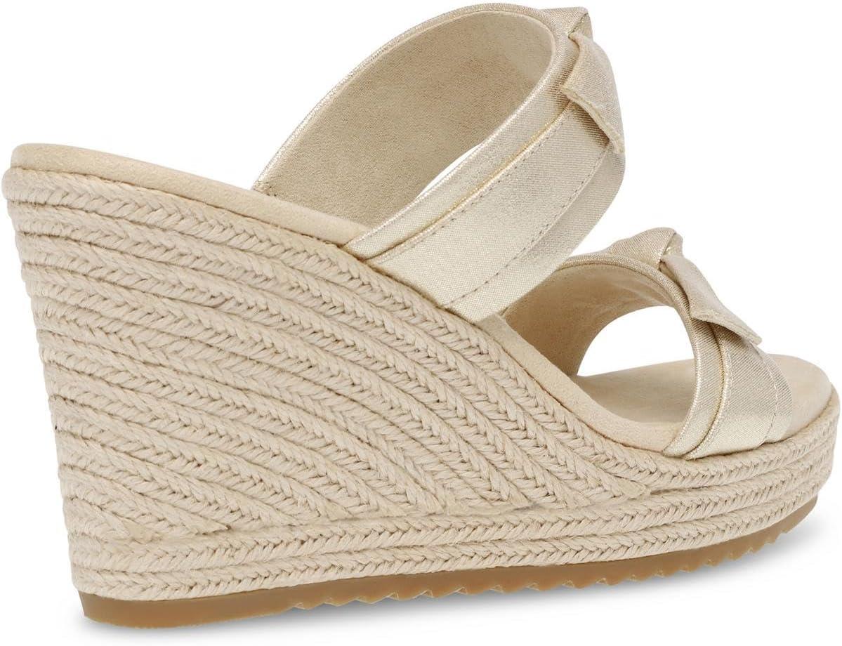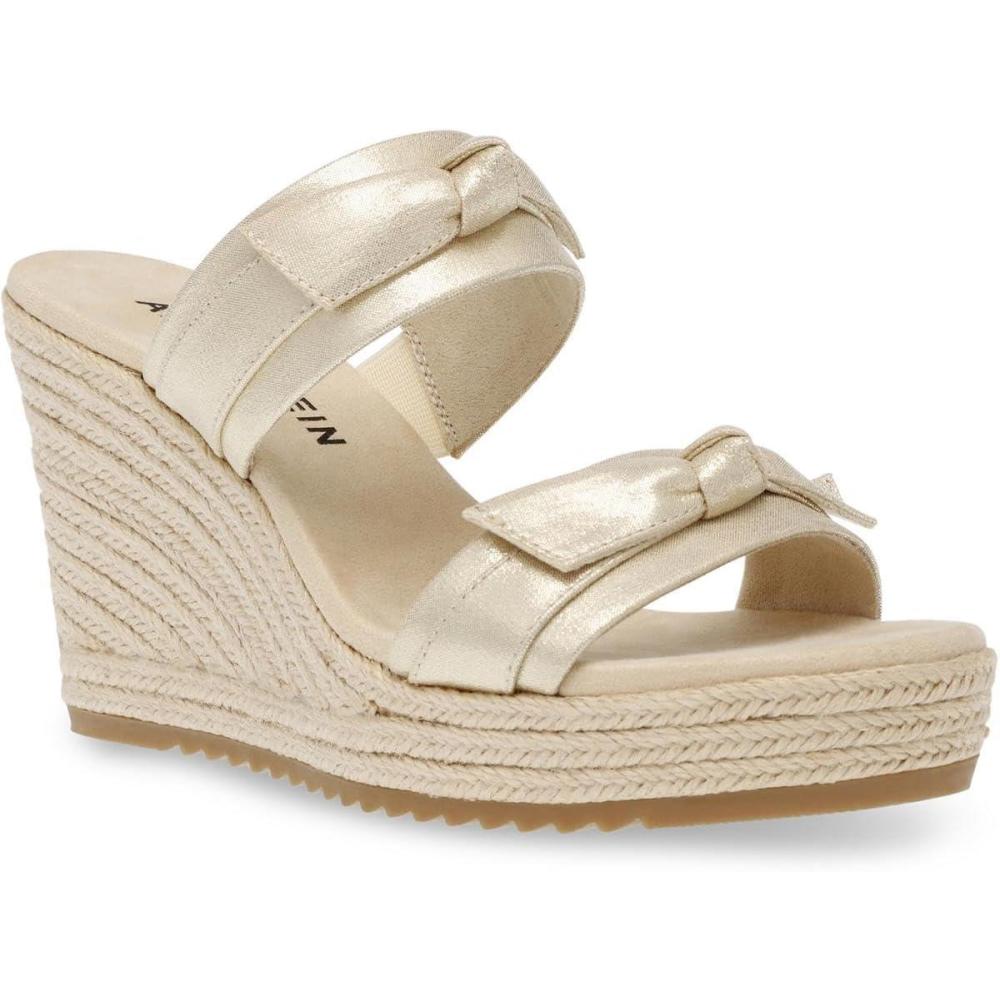 Anne Klein Womens Wiona Slip On Platforms Wedge Sandals(Light Gold)